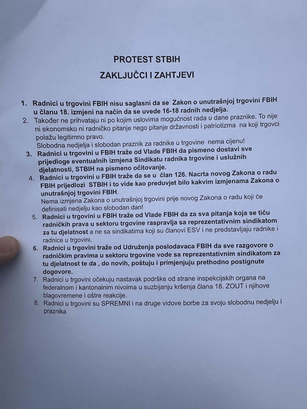 Neradnu nedjelju smo čekali 30 godina, ne zanimaju nas dnevnice od 100 KM!