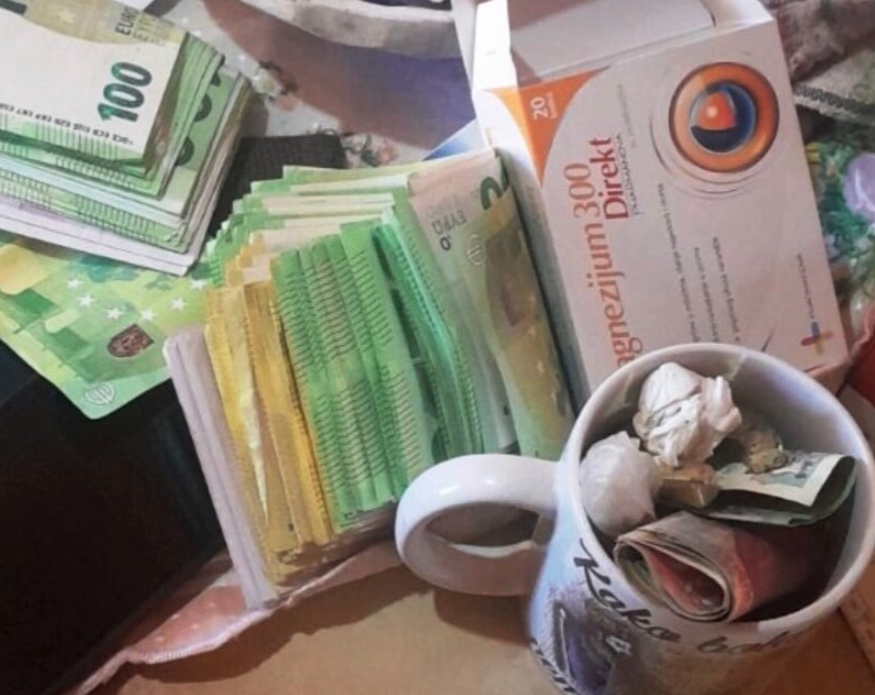 Tokom pretresa pronađena je i privremeno oduzeta veća količina novca – 33.000 eura u različitim apoenima, kao i arsenal oružja: dvije poluautomatske puške, jedna skraćena lovačka puška, jedna vazdušna puška, tri pištolja, dvije ručne bombe i oko 2.000 komada municije različitih kalibara.