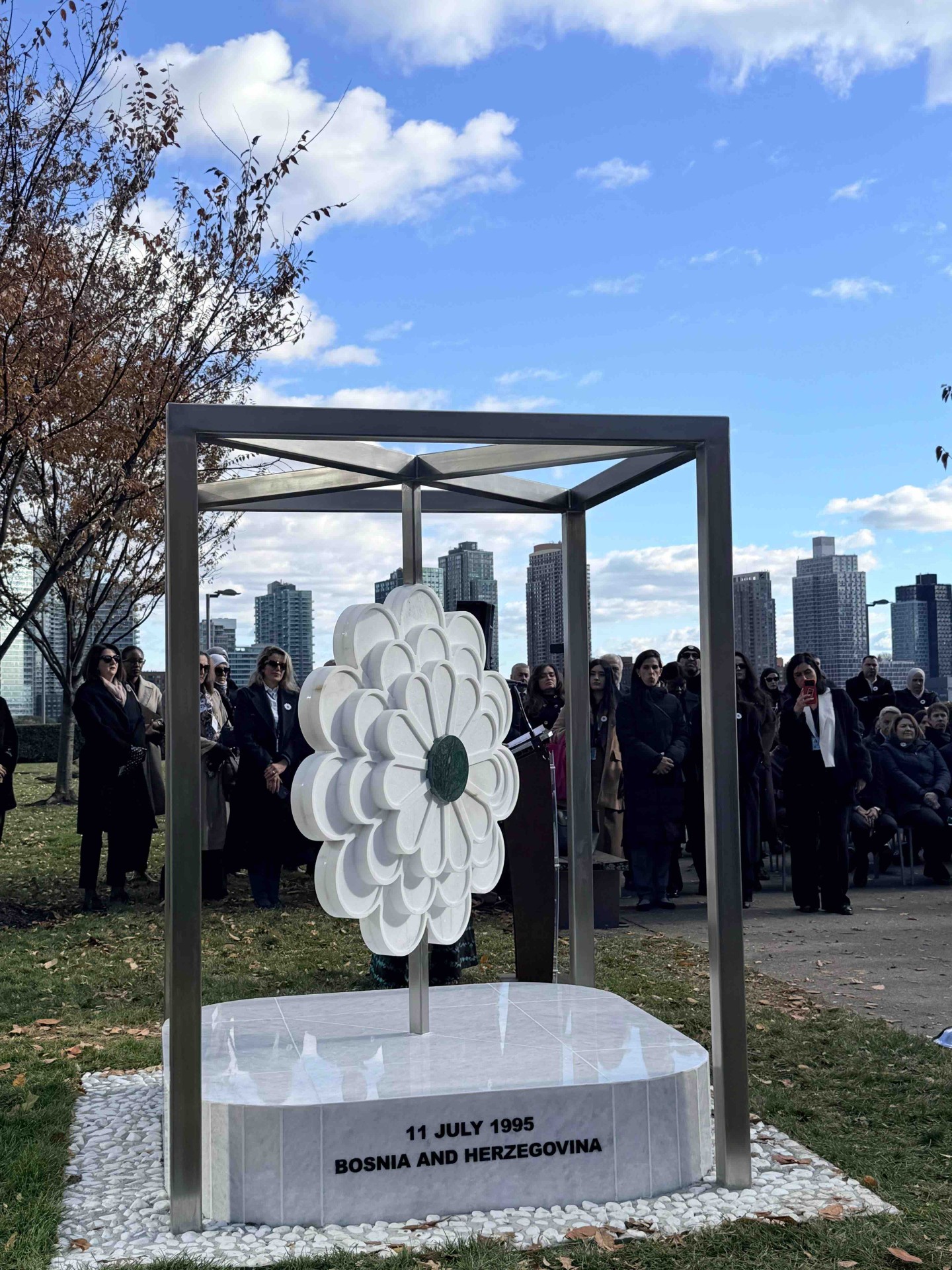 Otvaranje spomenika u UN parku u New Yorku predstavlja i konkretnu primjenu Rezolucije o Srebrenici, usvojene u Generalnoj skupštini Ujedinjenih nacija. Ambasador Bosne i Hercegovine u UN-u, Zlatko Lagumdžija, istakao je da ovim projektom nastavlja implementacija Rezolucije o međunarodnom danu sjećanja na žrtve genocida u Srebrenici.
