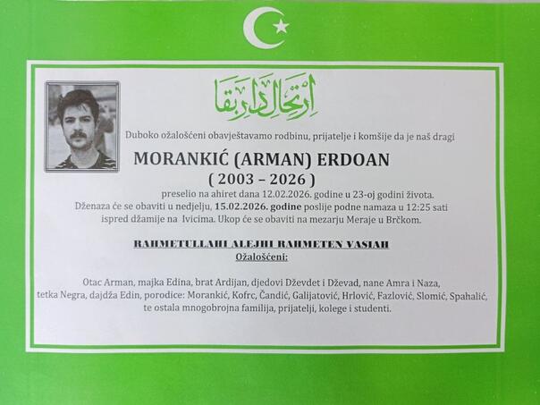 Tragično stradalom Morankiću će se dženaza-namaz klanjati danas, poslije ikindije namaza u 12:25 sati ispred džamije na Ivicima. Ukop će se obaviti na mezarju Meraje u Brčkom.