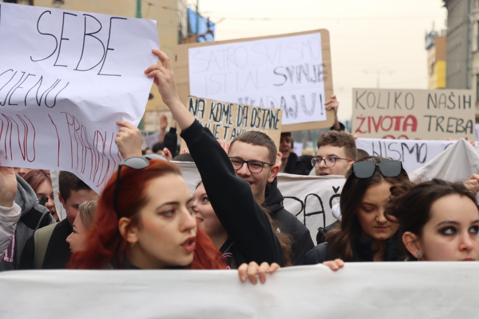 Tokom protesta mladi su nosili transparente sa snažnim porukama upućenim nadležnima.