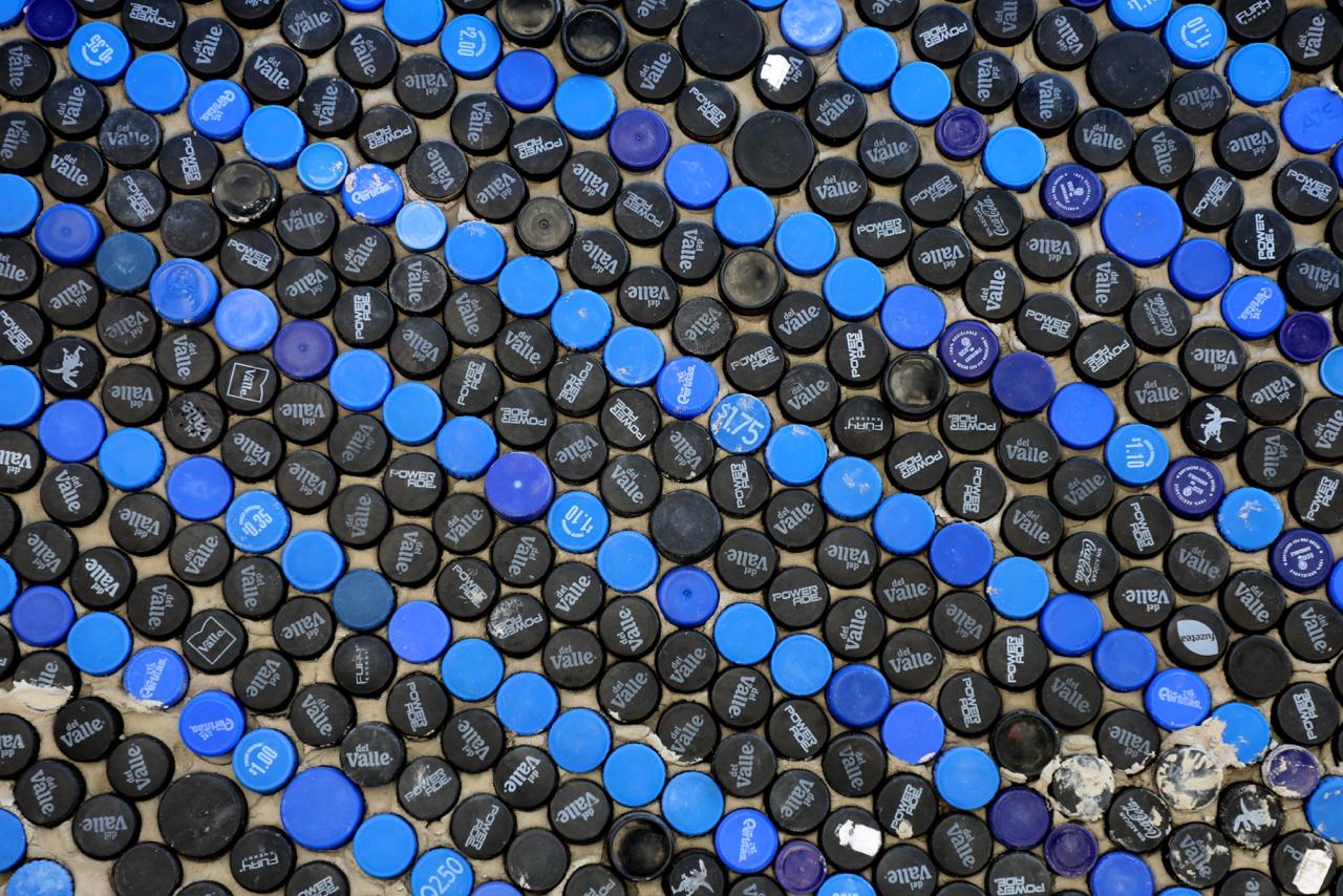 Masivni mural napravljen od plastičnih čepova za flaše prikazuje latinoameričku verziju čuvene Mona Lise, kraseći skromnu stambenu zgradu u radničkom naselju izvan glavnog grada Salvadora.