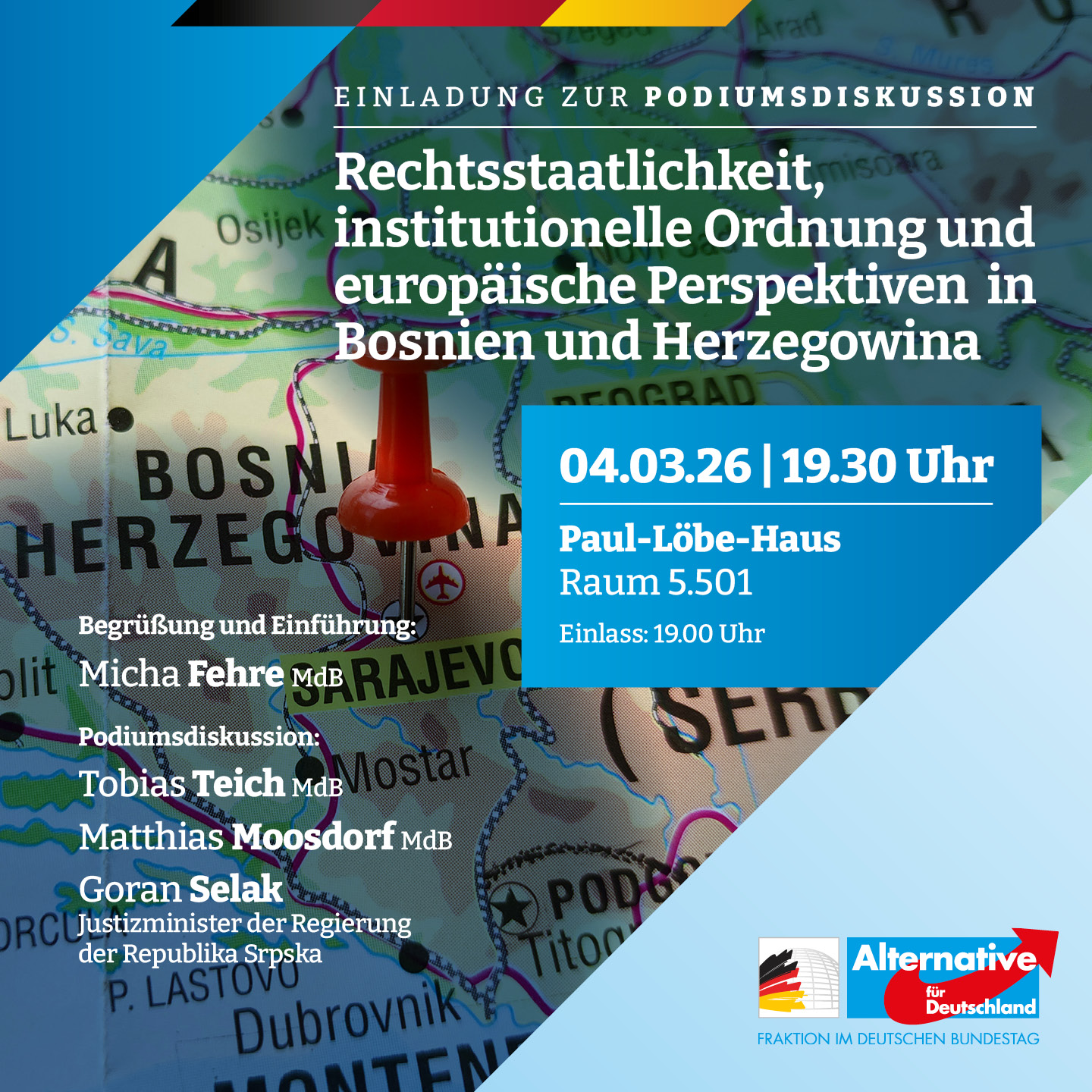 Panel-diskusiju organizuje Radna grupa za pitanja Evropske unije AfD-Bundestagsfraktion.