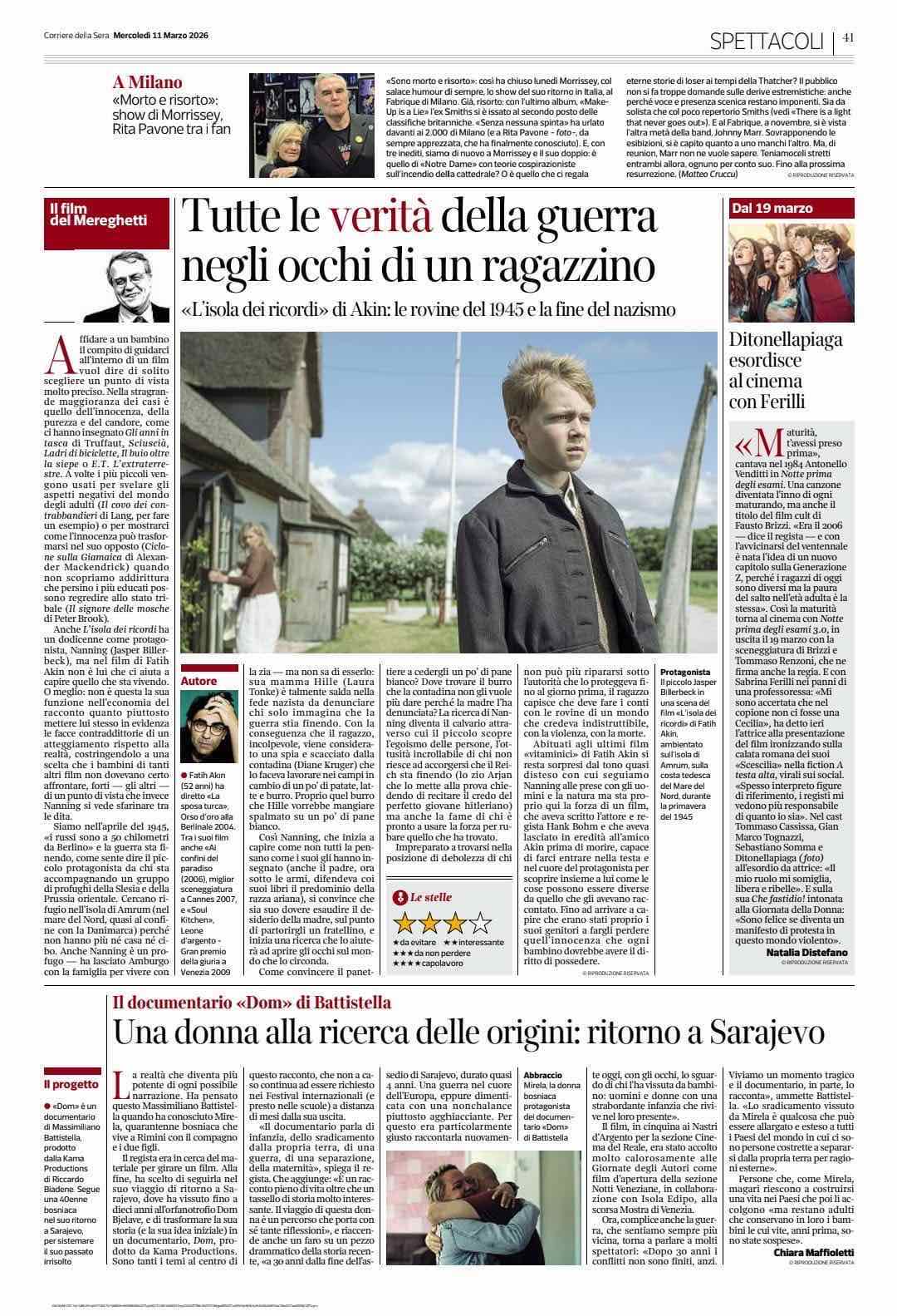 Corriere della Sera — najtiražnija i jedna od najuticajnijih italijanskih dnevnih novina — posvetila je danas u svom štampanom izdanju tekst o filmskoj priči o Sarajevu.