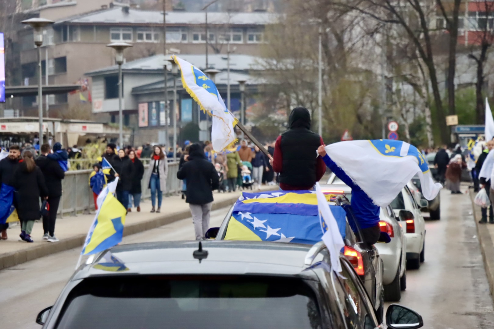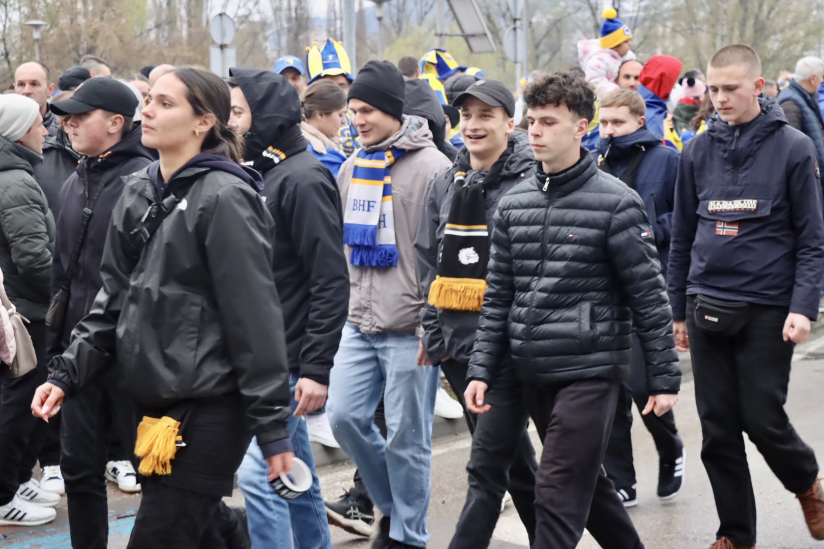 Grad je već satima u znaku reprezentacije, a centralno okupljanje navijača organizovano je ispred Arene Zenica. Odatle su se u velikom korteu uputili prema stadionu Bilino polje, uz pjesmu, baklje i prepoznatljivu navijačku energiju.