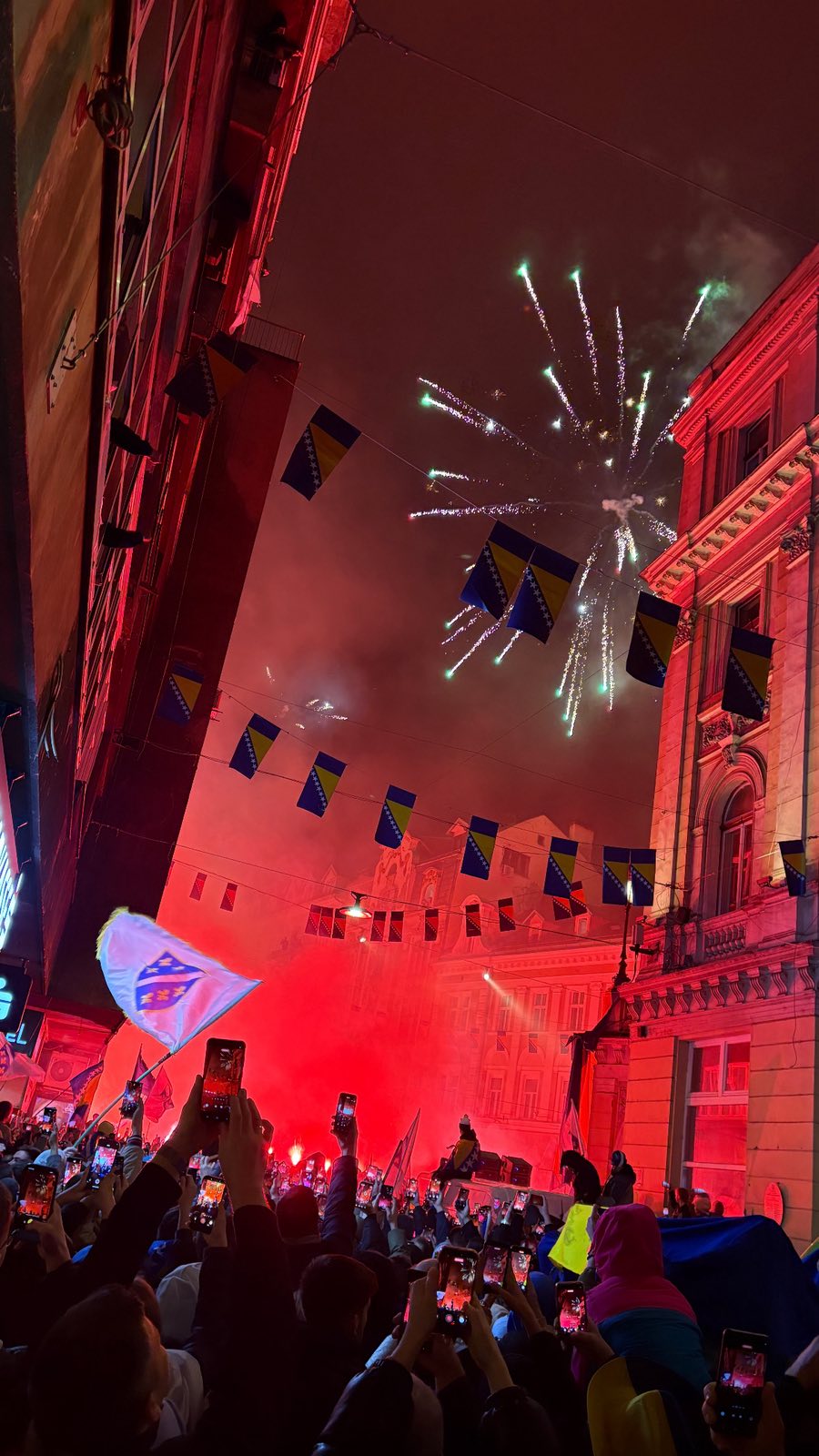 00:47 - Sve više ljudi stiže prema centru grada. Kolone vozila kreću se prema Vječnoj vatri, a jasno je da će Sarajevo večeras biti premalo za sve koji žele slaviti.