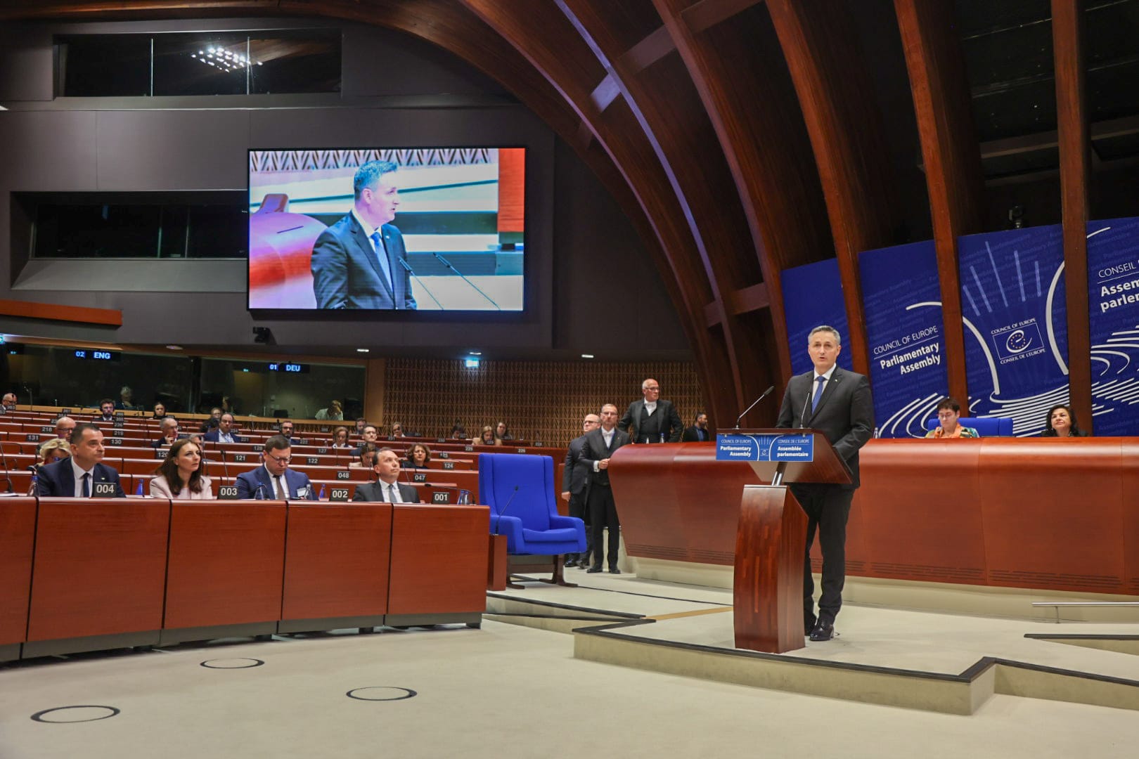 Čast mi je obratiti se, kao predsjedavajući Predsjedništva BiH, u domu evropske demokratije, instituciji koja već decenijama čuva i promovira temeljne vrijednosti: ljudsko dostojanstvo, slobodu, jednakost i vladavinu prava.