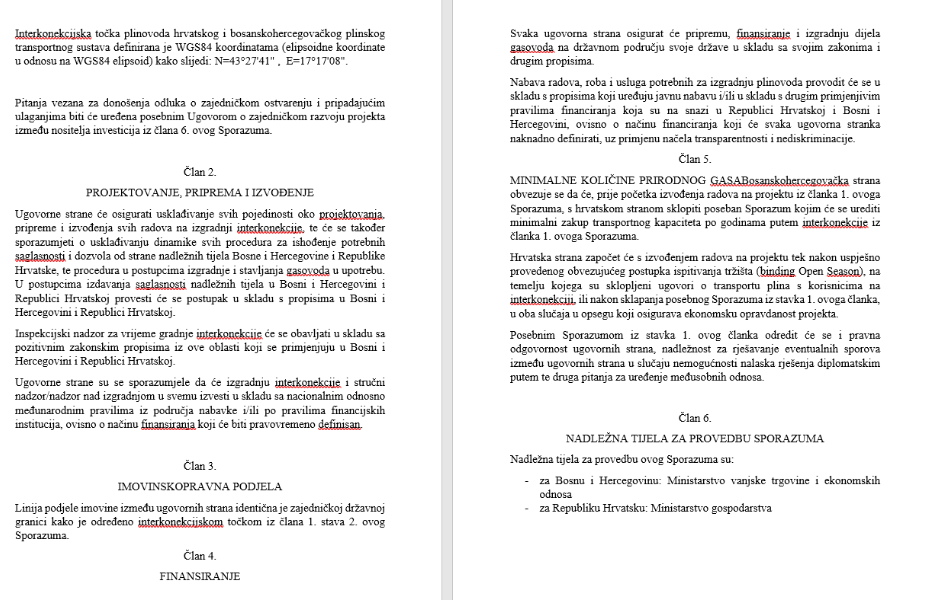 Jedna od ključnih novina jeste i obaveza BiH da unaprijed rezerviše kapacitete za transport ukapljenog plina putem LNG terminala na Krku, dok će Hrvatska prije početka realizacije izraditi studiju ekonomske opravdanosti projekta.