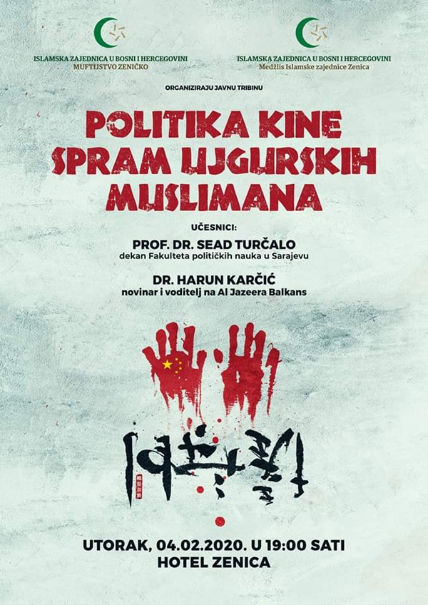 Muftijstvo zeničko i Medžlis Islamske zajednice Zenica bili su večeras domaćini javne tribine o temi „Politika Kine spram ujgurskih muslimana“, na kojoj su predavači bili dekan Fakulteta političkih nauka u Sarajevu Sead Turčalo te novinar Al Jazeere Balkans Harun Karčić.