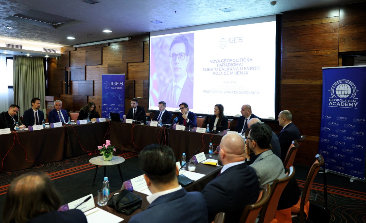 Institut za geopolitiku, ekonomiju i sigurnost (IGES) ugostio je u Sarajevu bivšeg predsjednika Sjeverne Makedonije Stevu Pendarovskog koji je održao predavanje i bio glavni gost u dijaloškoj sesiji sa članovima i prijateljima IGES-a pod nazivom “Nova geopolitička paradigma: mjesto Balkana u Evropi koja se mijenja“.