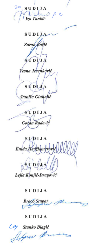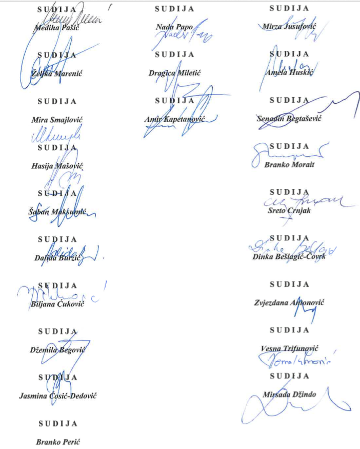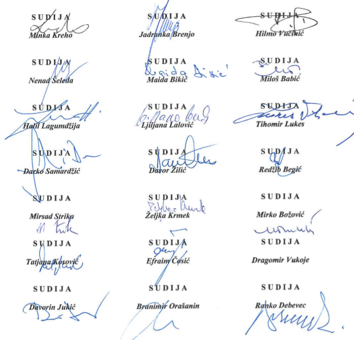 Sud Bosne i Hercegovine, kao jedina redovna sudska instanca na državnom nivou, ostat će dosljedan u promicanju načela vladavine prava i zaštiti principa zakonitosti, na kojima počivaju ustavni poreci svih demokratskih država, a koji nemaju alternativu i mogućnost izbjegavanja radi bilo kakvih ciljeva.