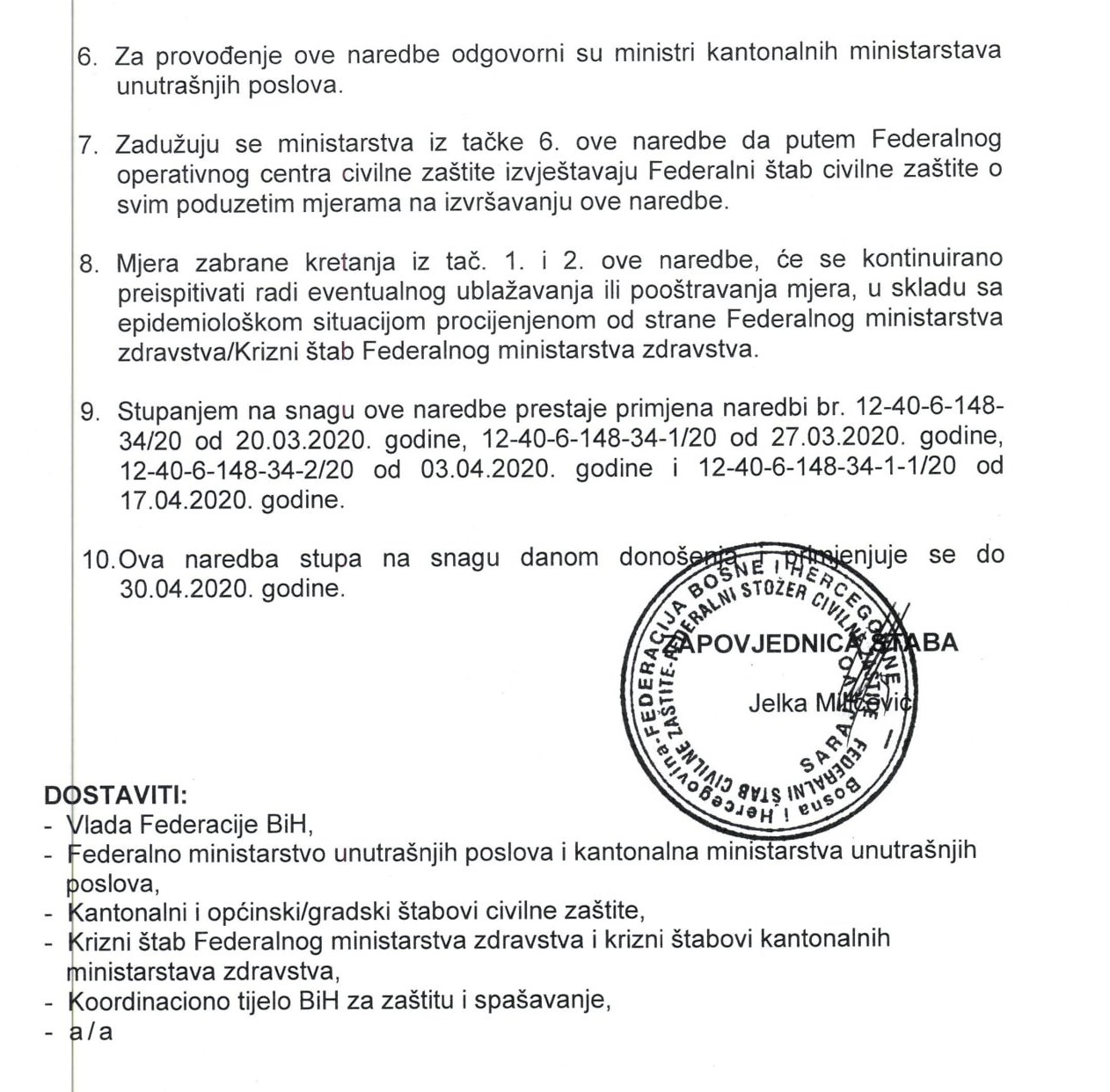 Ova naredba stupa na snagu danom donošenja i primjenjuje se do 30. aprila.