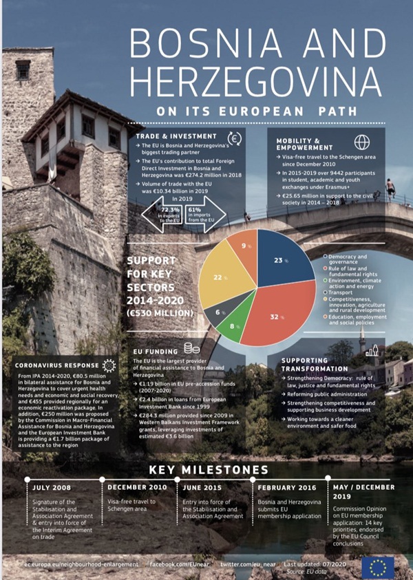 Kada je u pitanju evropski put BiH, Tegeltija je naglasio da je fokus rada Vijeća ministara, uprkos izazovima nastalim usljed posljedica pandemije koronavirusa, usmjeren ka perspektivi sticanja statusa kandidata i otvaranja pristupnih pregovora o članstvu u EU.