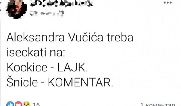 U drugoj objavi postavlja se pitanje da li predsjednika Srbije treba "isjeckati na kockice ili šnicle"