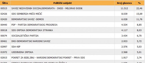 Gotovo sva biračka mjesta obrađena su u Bijeljini (99,44 posto), gdje je Ljubiša Petrović (SDS-PDP), kandidat za gradonačelnika, osvojio najviše, 47,54 posto glasova, a iza njega je Mićo Mićić (“Zajedno za Semberiju i Srpsku”) sa 40,57 posto glasova.