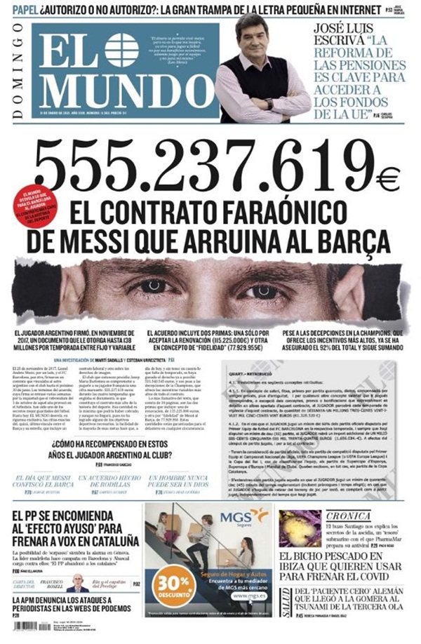 U priču pod naslovom “Faraonski ugovor Lea Messija koji je uništio Barcelonu” Mundo je izračunao da je Messi na temelju aktuelnog ugovora s bonusima zarađivao 138 miliona eura godišnje tokom četiri sezone.