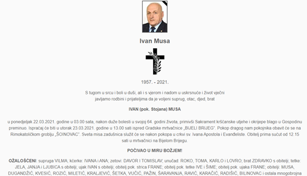 Predsjednik HKDU Ivan Musa preminuo je nakon duže bolesti u 64. godini života.
