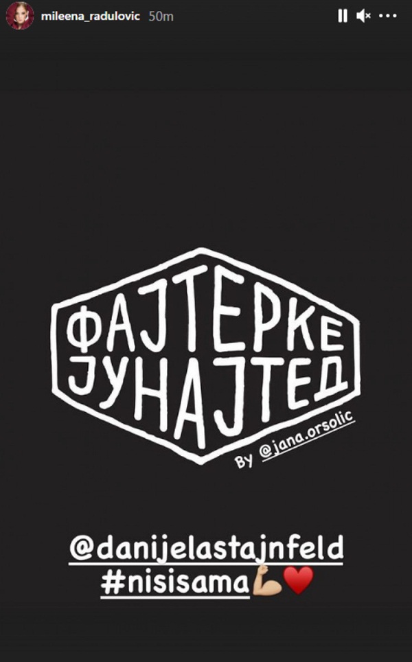 - Fajterke junajted, nisi sama - napisala je u objavi Radulović, a označila je i Danijelu Štajnfeld.