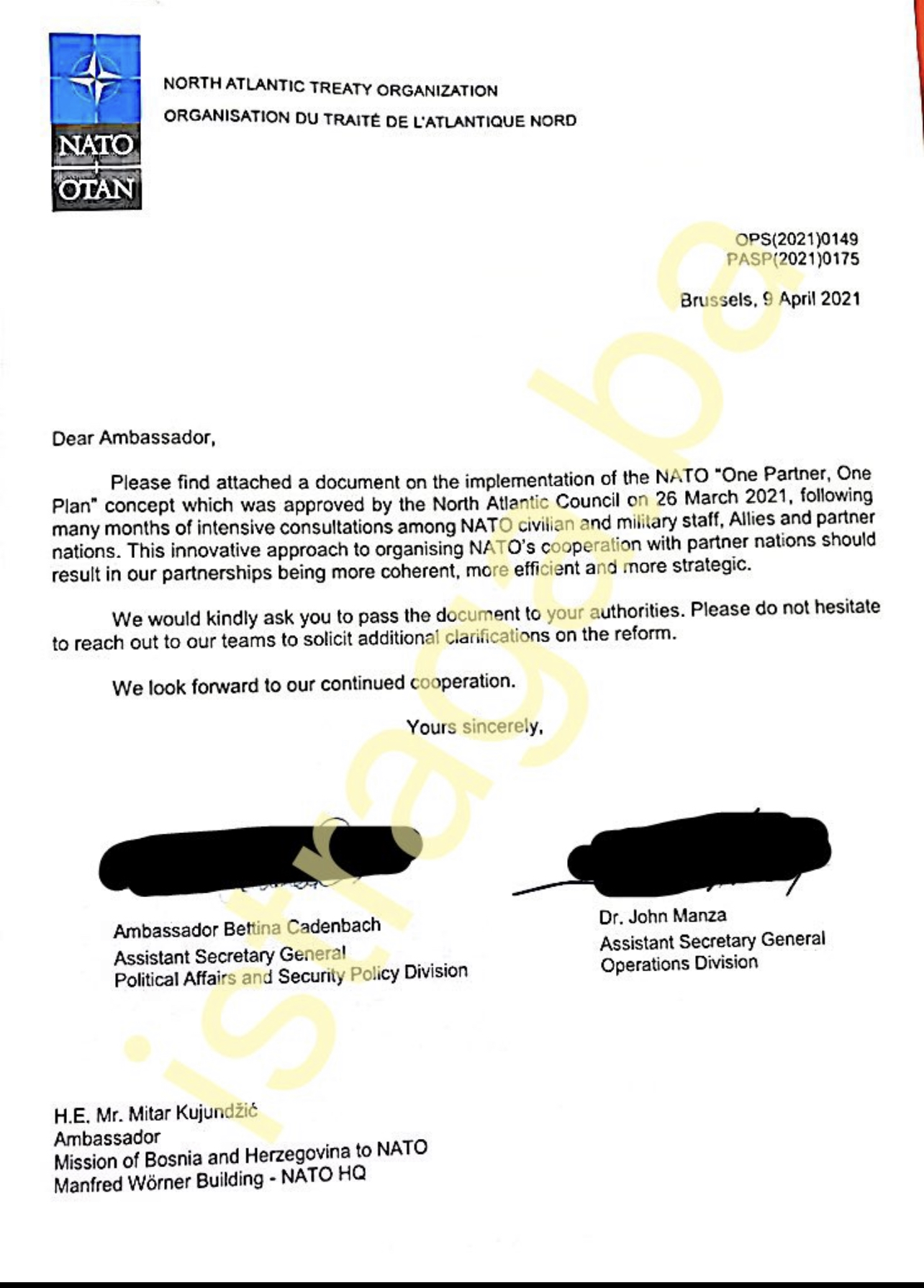 “Kao pretendenti za članstvo u NATO-u, zemlje koje imaju godišnji nacionalni Program ili koje učestvuju u Akcionom planu za članstvo u NATO-u imaju drugačije politički odnos sa Savezom. Istovremeno, ova tri partnera (Bosna i Hercegovina, Gruzija i Ukrajina) u velikoj mjeri koriste gore opisane partnerske alate, pa će tako imati značajnu korist od učešća u ITPP procesu. Prema ITPP-u, Gruzija i Ukrajina će i dalje podnositi svoje godišnje nacionalne programe, a Bosna i Hercegovina će i dalje podnositi svoj Program reformi”, navedeno je u prilogu dokumenta kojeg je predstavnici NATO-a 9. aprila ove godine uručili bh. ambasadoru u Savezu Mitru Kujunžiću.