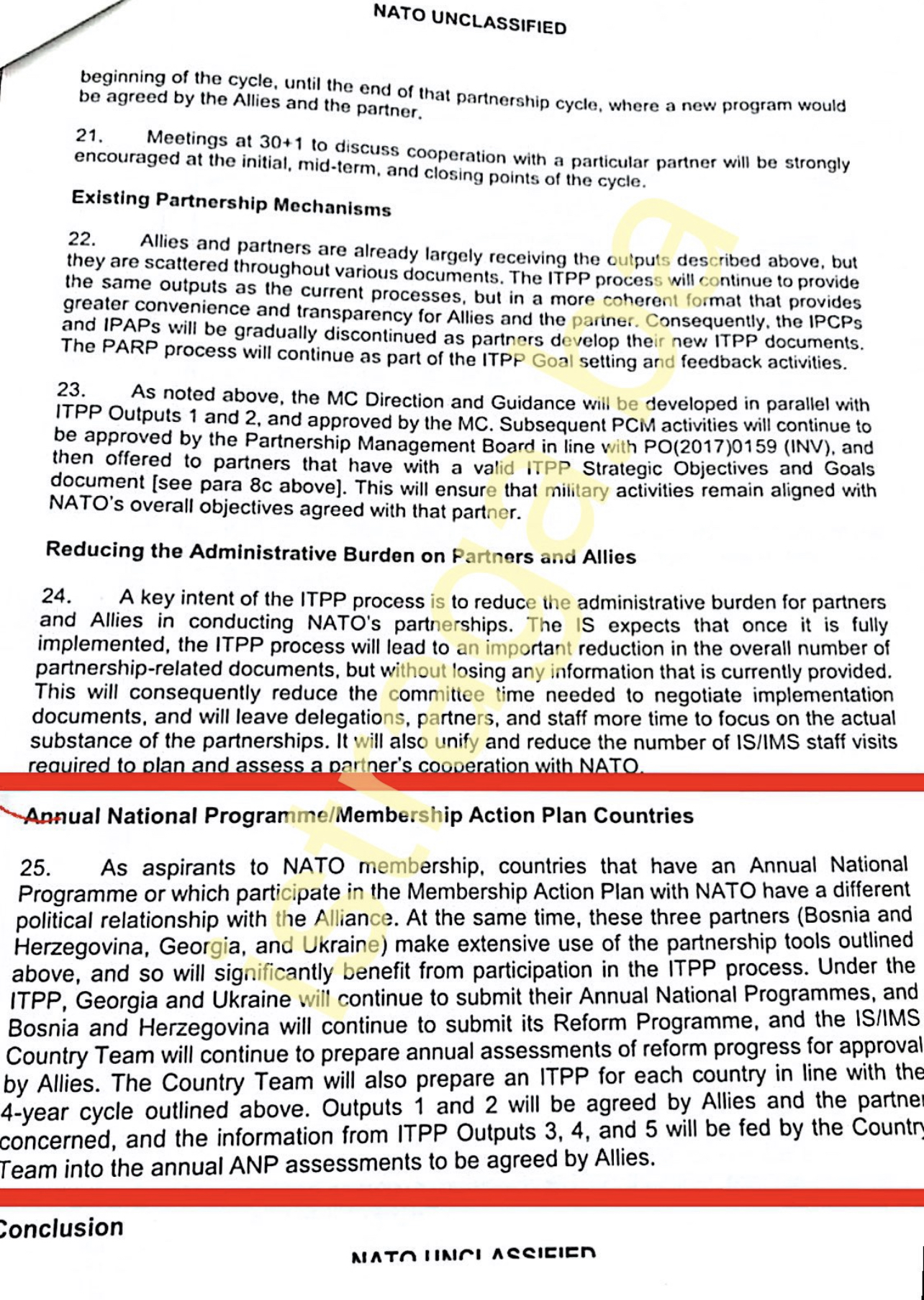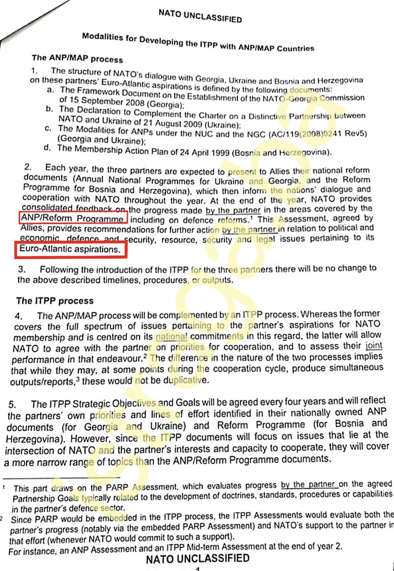 Ovi dokumenti su dostavljeni bh. institucijama kako bi bile obaviještene da NATO uvodi i novi proces nazvan ITPP (Individually Tailored Partnership Programme), odnosno Individioalno prilagođeni program partnerstva. Taj proces (ITPP) će biti komplementaran i dodan ANP/MAP. Dok ANP pokriva puni spektar pitanja koja se odnose na partnerske aspiracije za članstvo u NATO-u i koncentrisan je na nacionalne obaveze država u tom pogledu, ITPP će NATO-u omogućiti da s partnerom dogovara o prioritetima saradnje i da procjenjuje njihov zajednički nastup u tom poduhvatu.