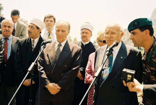 Alija Izetbegović i Sulejman Demirel u posjeti Starom mostu 1995.