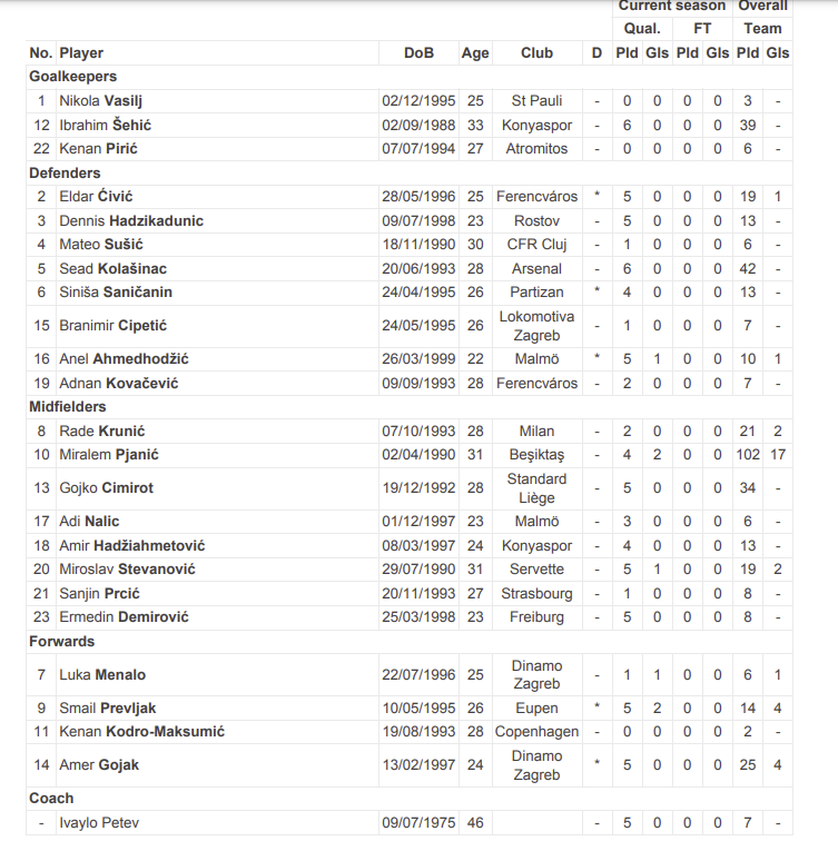 Ova vijest stigla je danas kada je UEFA objavila spisak registrovanih igrača za utakmicu.