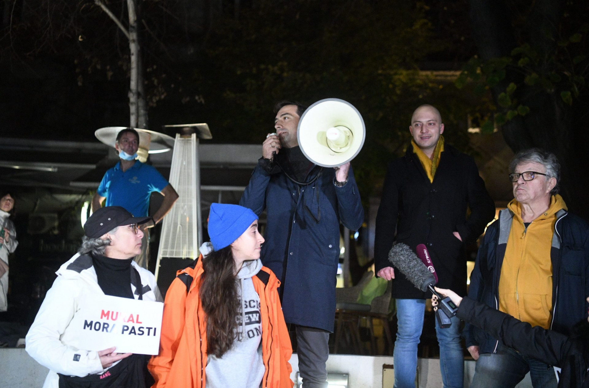 Što se mene tiče, Aleksandar Vučić mora pasti iz dva razloga: jedan je što radi ono što ne smije, gazi Ustav i nipodaštava zakone, ponaša se kao tiranin. On naručuje crteže i kojekakve murale. Kao građanin Beograda ponosan sam da je naš, moj grad, počeo da cvjeta u cvijetu solidarnosti i empatije prema žrtvama - rekao je Radovanović i poručio momcima koji nose crne majice da se povežu zajedno protiv fašizma.