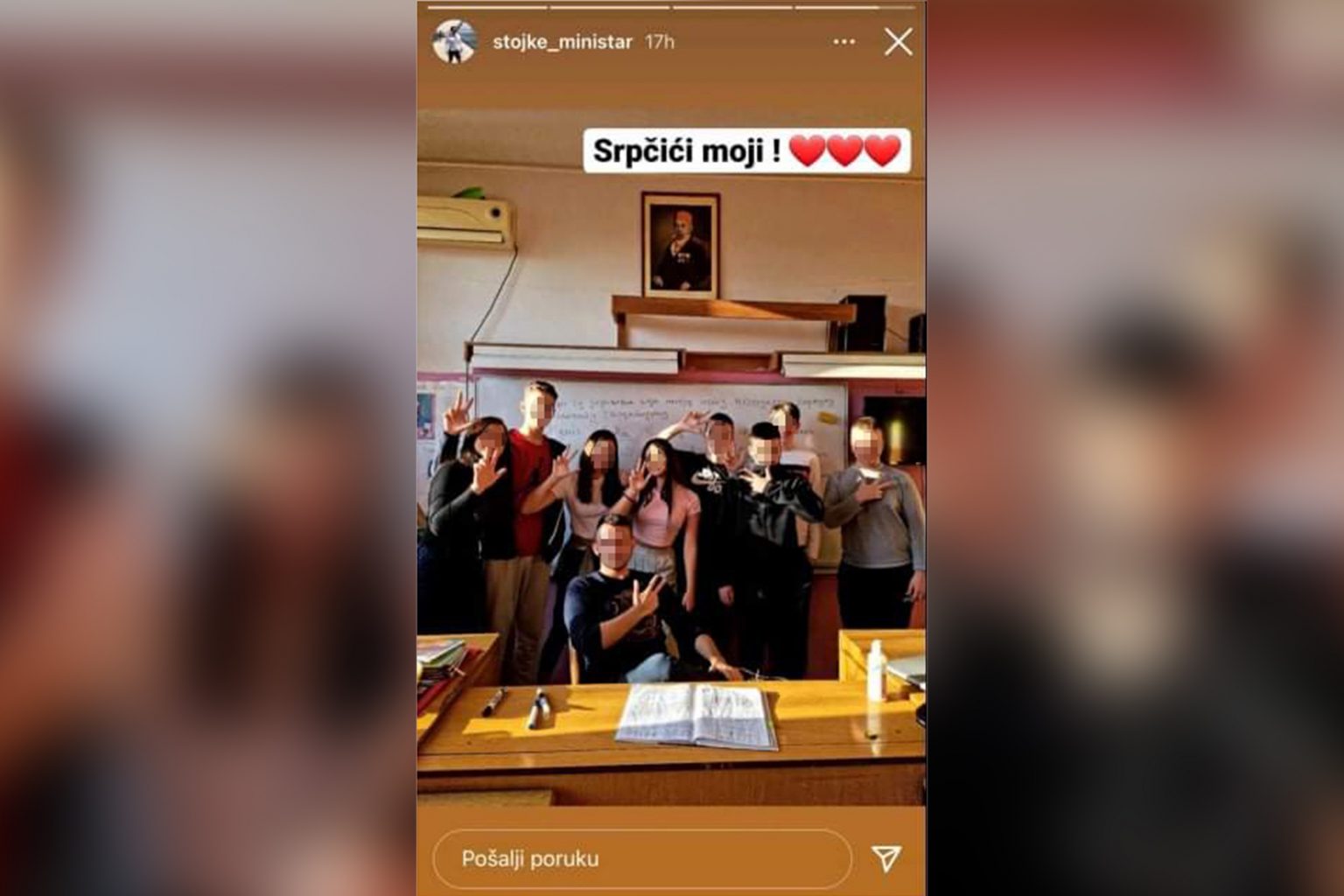 Prije godinu dana, "Stojke Ministar", kako se predstavlja na društvenim mrežama, objavio je skoro identičnu sliku iz Gimnazije "Svetozar Marković", gdje je također bio na zamjeni.