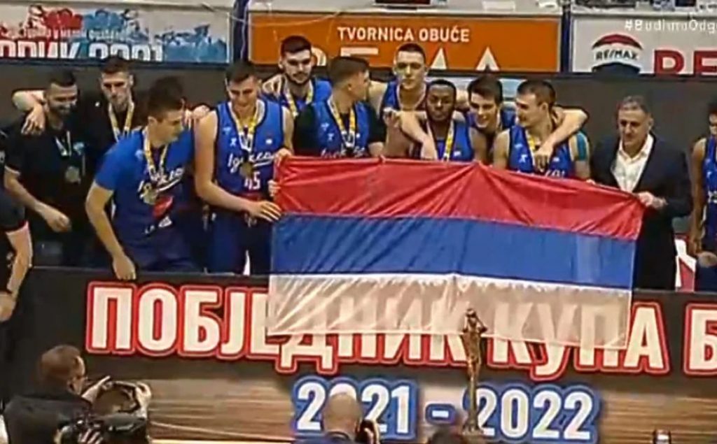 Sramotne scene gledali smo nakon utakmice, pri dodjeli pehara i medalja osvajačima Kupa, pošto su tada košarkaši Igokee, skupa sa trenerom Draganom Bajićem i Miloradom Dodikom, koji je iskoristio priliku da pozira, razvili zastavu manjeg bh. entiteta.
