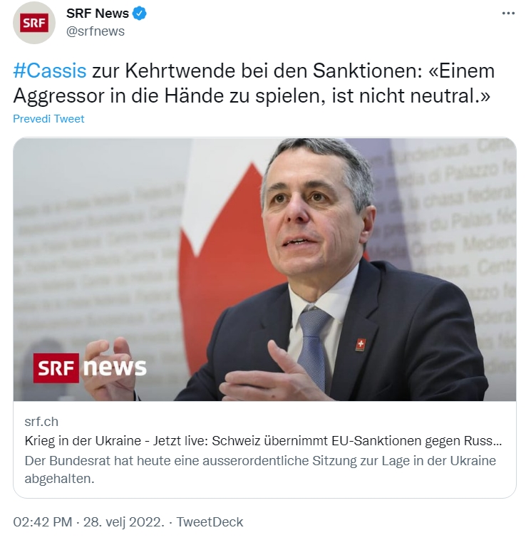 Ranije danas ovu informaciju su najavili brojni svjetski mediji poput BBC-ja, a problem je nastao nakon što je Rusija prošlog četvrtka napala Ukrajinu.