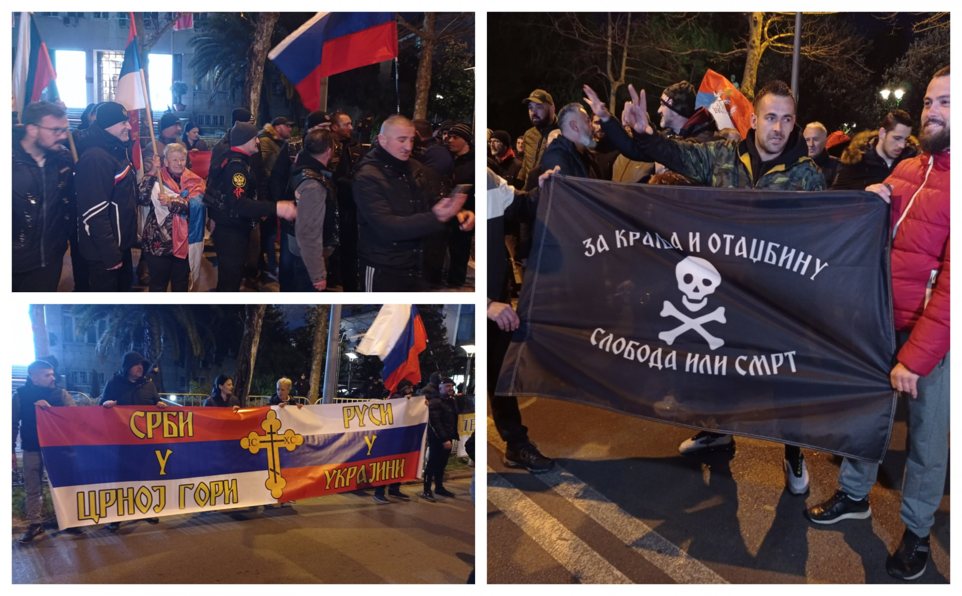 Na skup podrške su došli i "Noćni vukovi", a predvodnici kolone nose transparent "Srbi u Crnoj Gori, Rusi u Ukrajini".