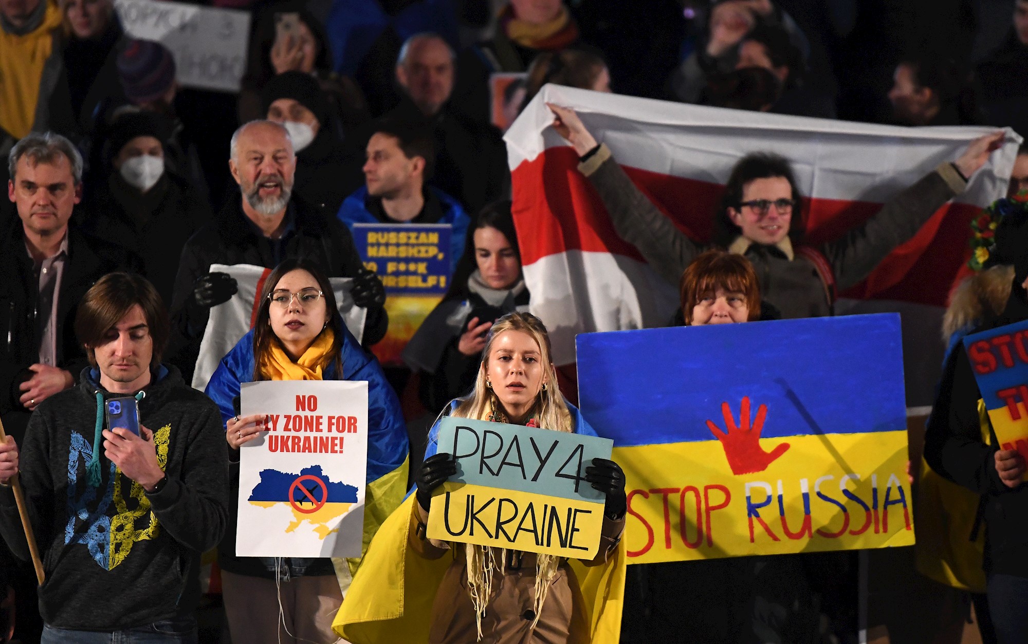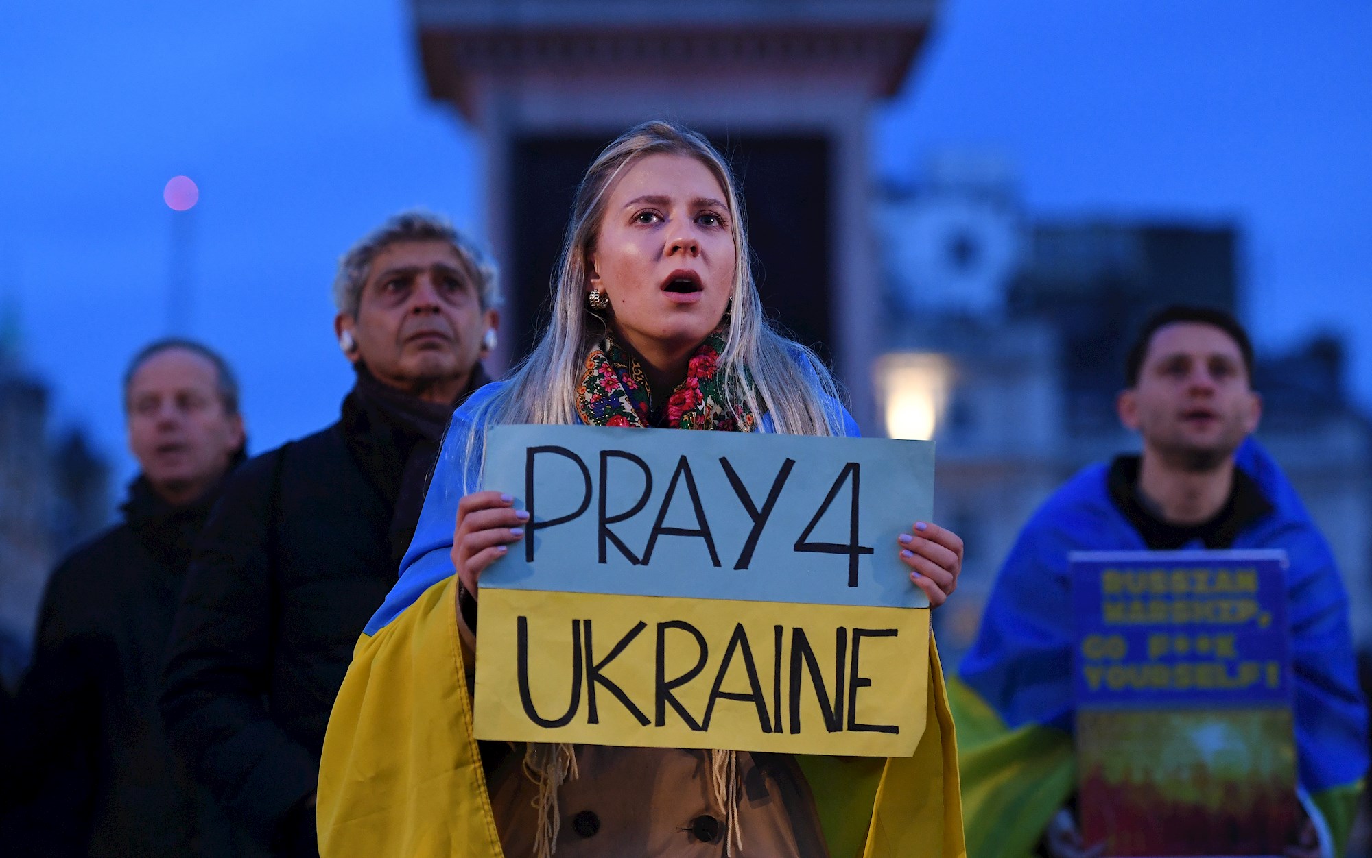 Drugi su, pak, bili ogrnuti ukrajinskim zastavama i nosili natpise kojima poručuju "molite za Ukrajinu" i "zaustavite rat".