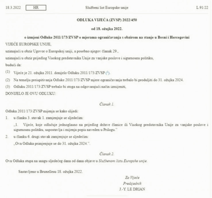 Ovo, u kontekstu sankcija za lidera SNSD-a Milorada Dodika znači da, zbog poznatih stavova Mađarske i Hrvatske o ovom pitanju, do njih, barem na nivou čitave EU očigledno neće doći.