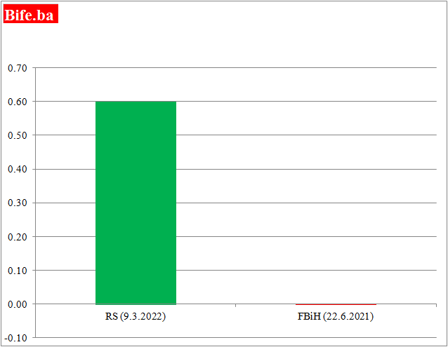 Iz ovakve ogromne razlike u kamatnoj stopi (0,6% u odnosu na -0,002%), a pošto se Republika Srpska mnogo intezivnije zadužuje od Federacije BiH, jedini logičan zaključak bi mogao biti da se javne finansije RS i FBiH razlikuju kao nebo i zemlja?