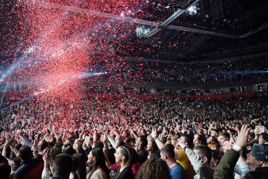 Rozga je svoj prvi koncert u najvećoj srpskoj dvorani počela pjesmom nekadašnjeg sastava Magazin "Ne tiče me se", i vizuelnim spektaklom - bila je okružena brojnim plesačima i plamenim stubovima, dok su prostor ispunile konfete.