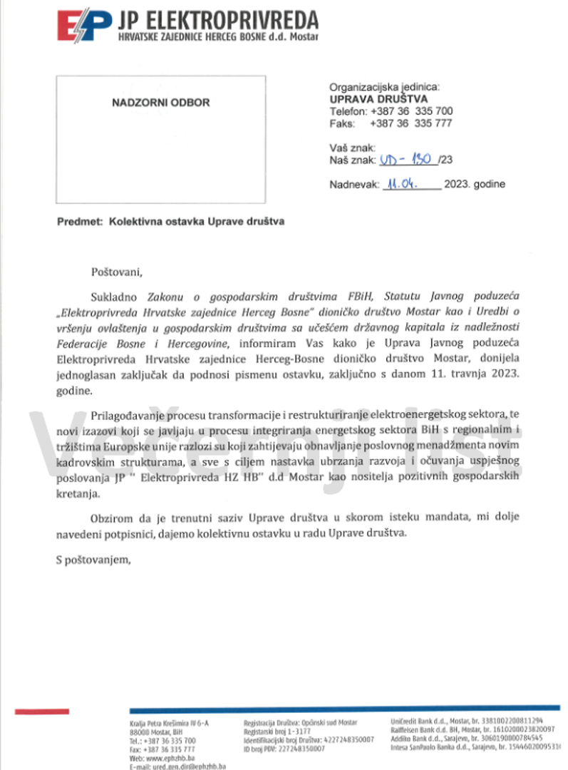- S obzirom da je trenutni saziv Uprave društva u skorom isteku mandata, mi dolje navedeni potpisnici, dajemo kolektivnu ostavku u radu Uprave društva - navodi se u dokumentu, u čijem je posjedu Večernji list.