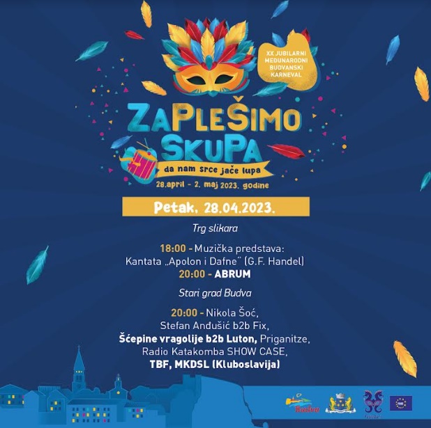 Do sada najveći Međunarodni budvanski karneval, čiji kvalitet programa, broj karnevalskih učesnika i muzičkih nastupa, na pravi način obilježava veliki, 20. jubilej, održat će se od 28. aprila do 2. maja na trgu ispred i unutar Starog grada pod sloganom „Zaplešimo skupa, da nam srce jače lupa“ u organizaciji Turističke organizacije opštine Budva i NVO „Feštađuni“.