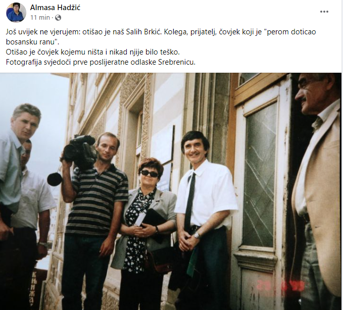 "Još uvijek ne vjerujem: otišao je naš Salih Brkić. Kolega, prijatelj, čovjek koji je "perom doticao bosansku ranu". Otišao je čovjek kojemu ništa i nikad njije bilo teško. Fotografija svjedoči prve poslijeratne odlaske Srebrenicu."