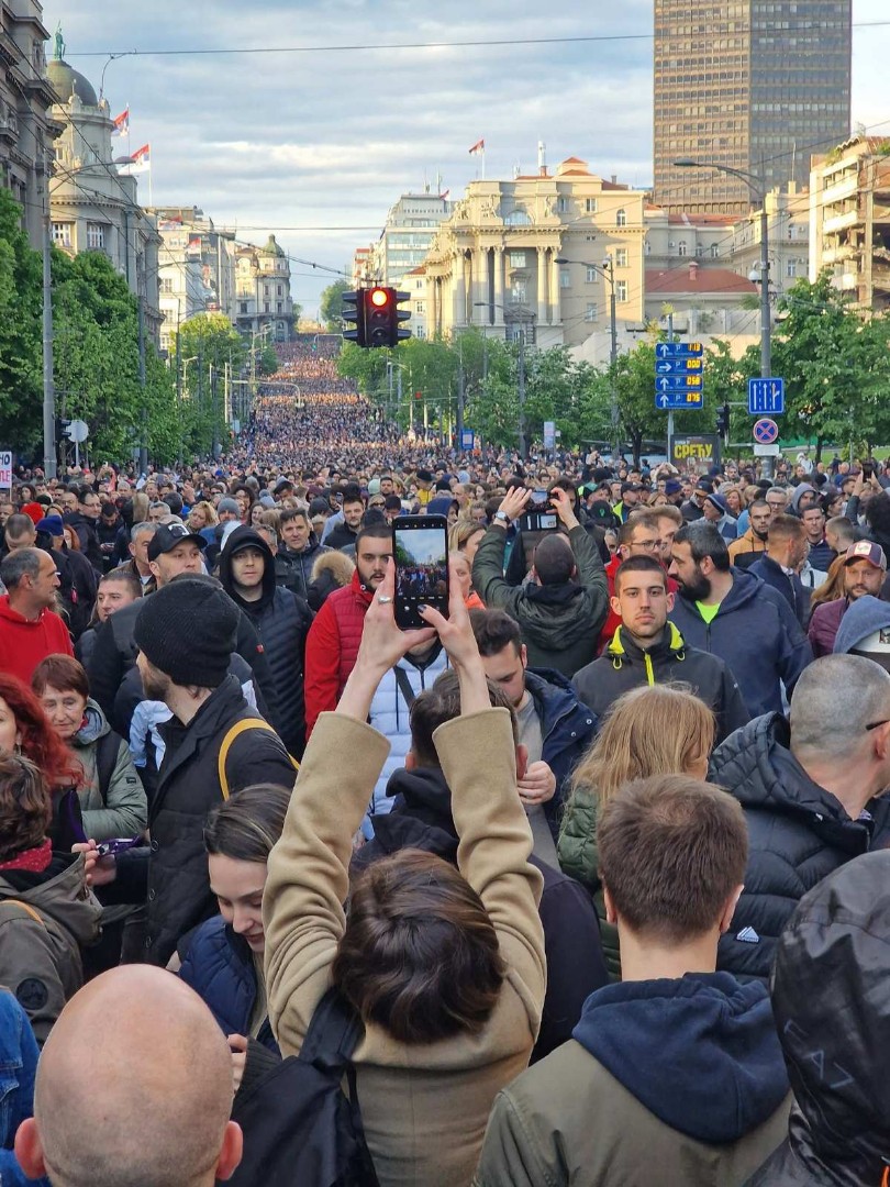 Kolona je duga kilometar i po, javlja N1. Pojedini govore da je ovo najveći protest u Srbiji u posljednjih 10 godina.