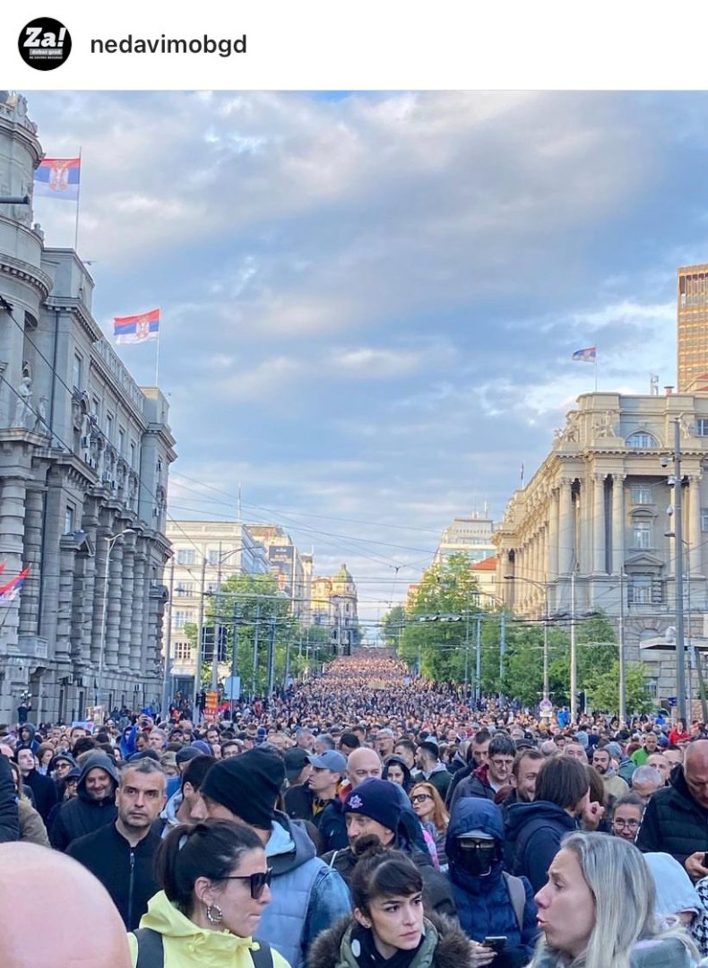 Podsjećamo, prvi protest „Srbija protiv nasilja“, koji se održao u ponedjeljak, 8. maja, okupio je, prema tvrdnjama organizatora, 50.000 ljudi. Organizatori protesta zahvalili su policiji jer se tokom tog skupa ponašala po zakonu i pozvali pripadnike policije da se tako ponašaju i tokom današnjeg protesta.