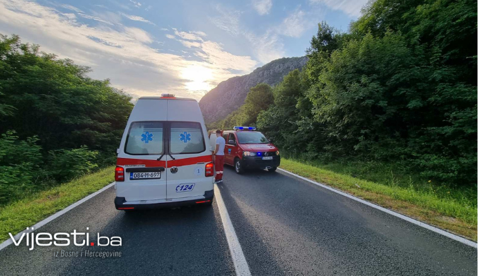 Povrijeđenom biciklisti više od 20 minuta je na licu mjesta ukazivana pomoć, a potom je vozilom Hitne pomoći prebačen za Mostar.