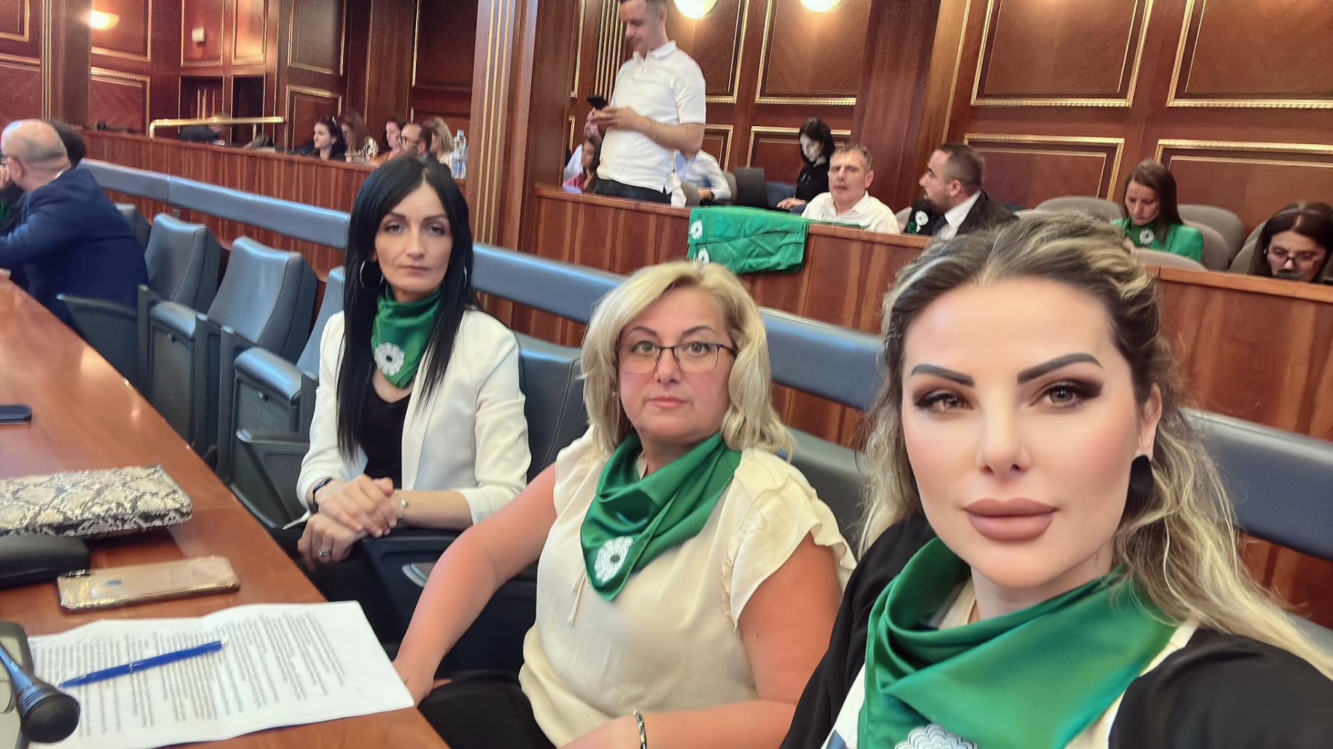 Zastupnice su nosile zelene marame na kojima se nalazi cvijet Srebrenice, a zastupnici cvijetove Srebrenice, koji su poslanicima podijeljeni prije početka sjednice.