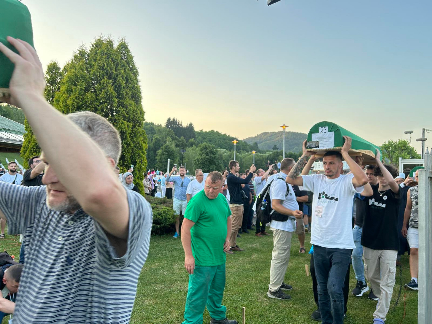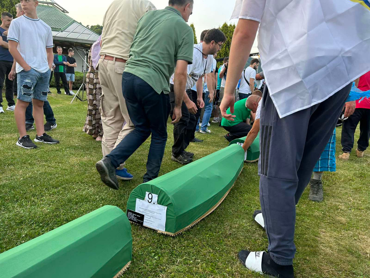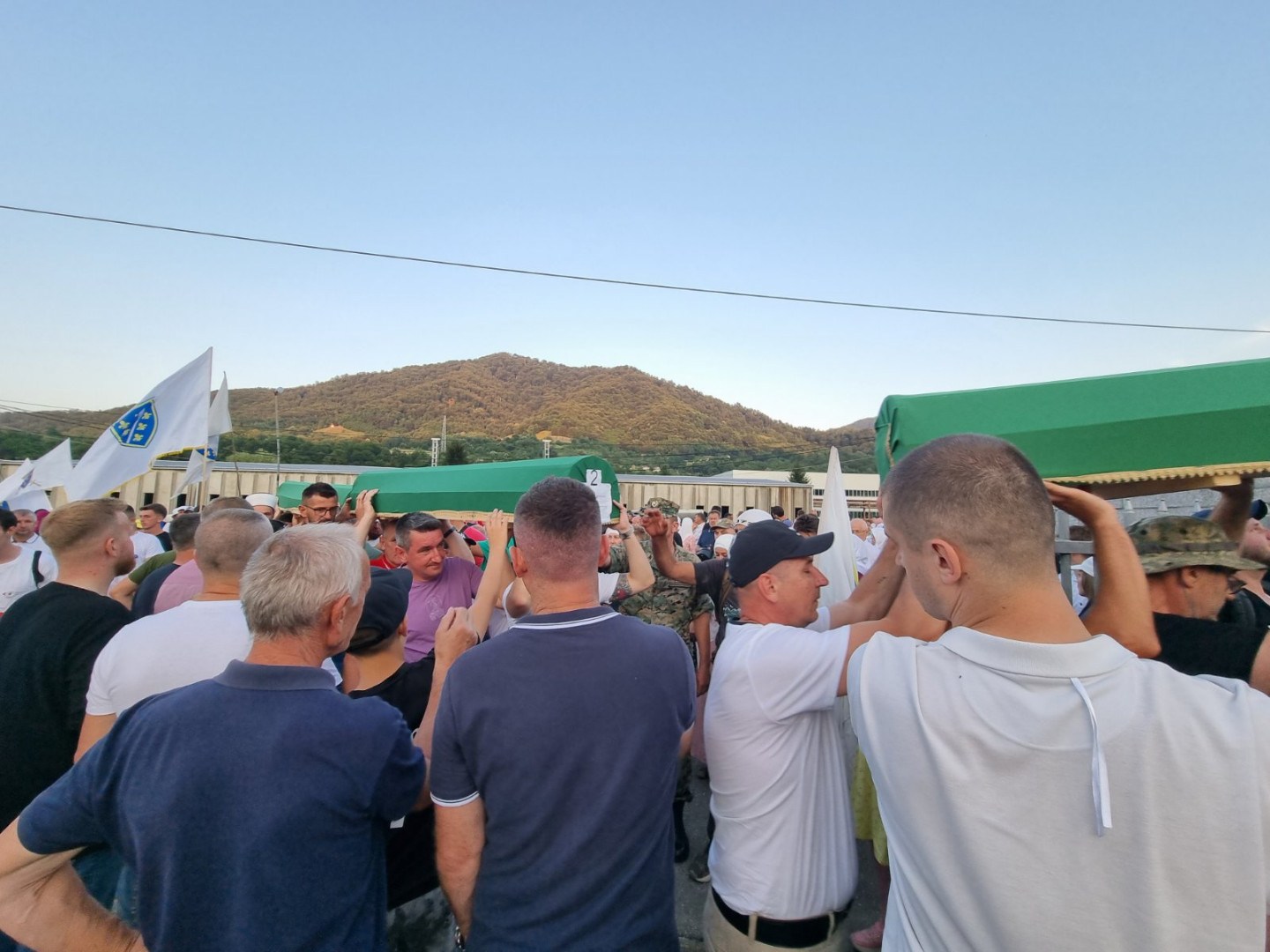 ... koji će sutra biti ukopani u Memorijalnom centru Potočari, večeras su izneseni iz prostora nekadašnje Fabrike akumulatora i preneseni do prostora musale Memorijalnog centra.