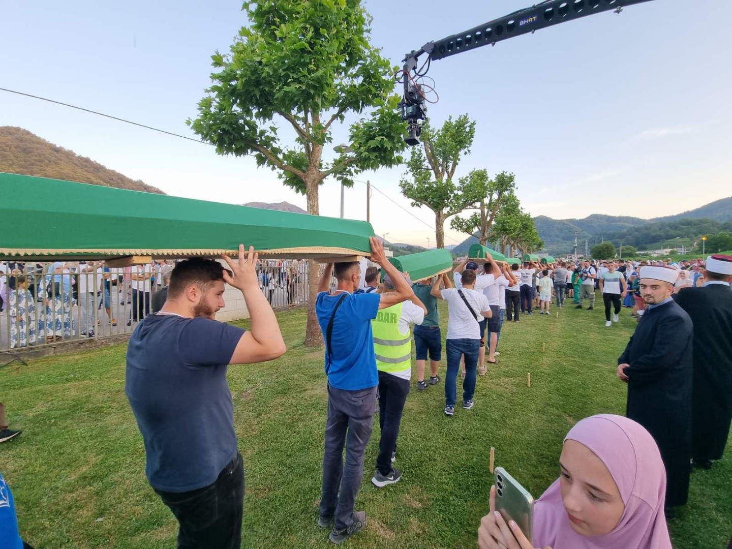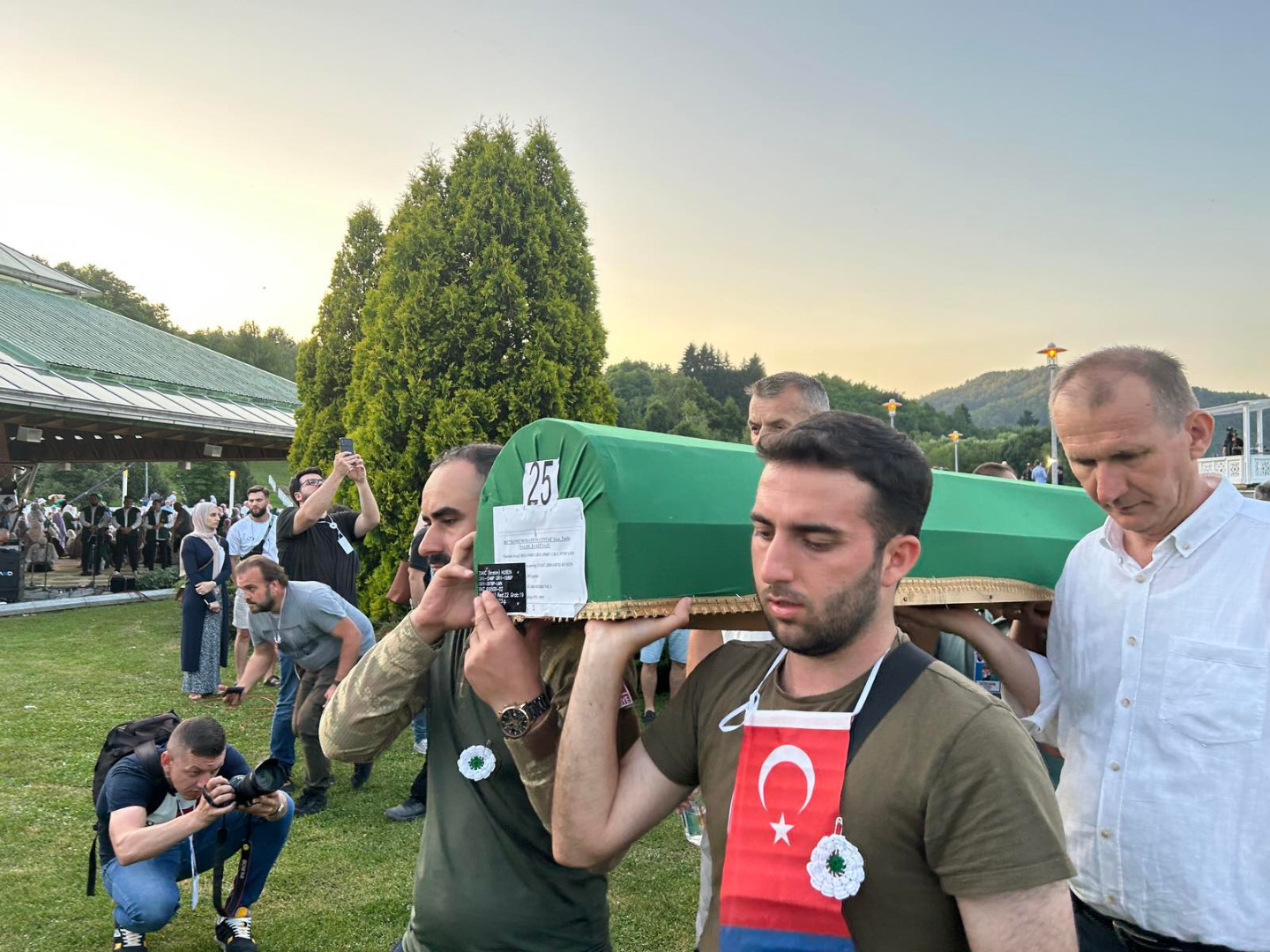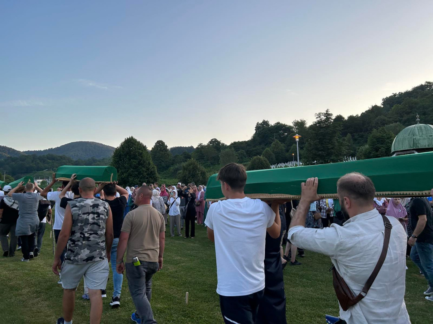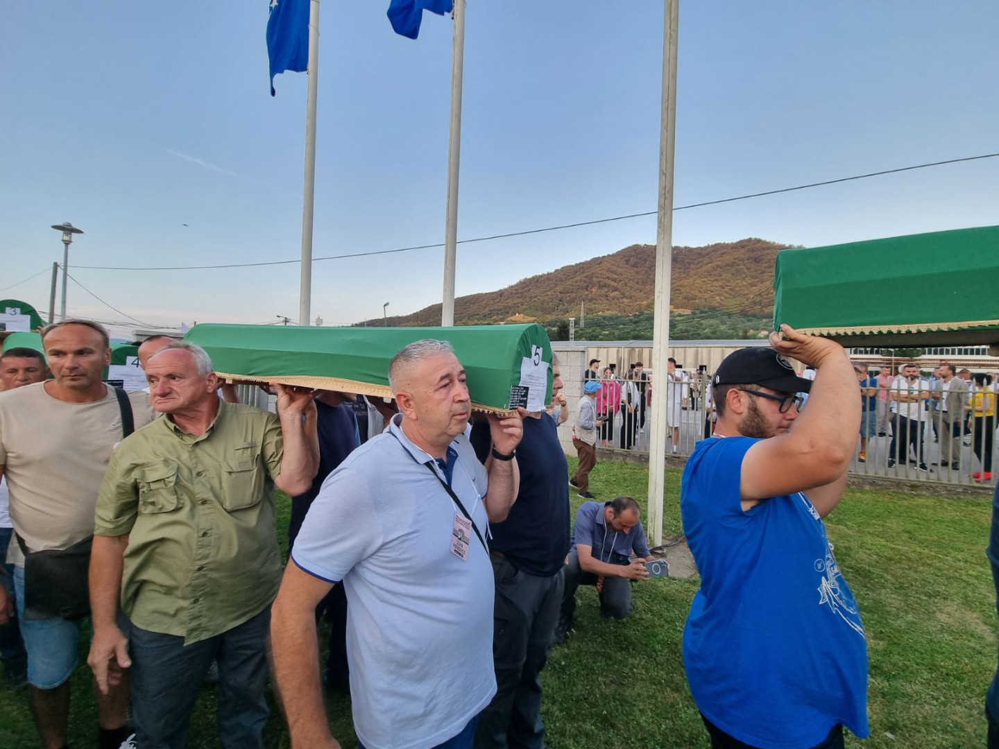 ... koji će sutra biti ukopani u Memorijalnom centru Potočari, večeras su izneseni iz prostora nekadašnje Fabrike akumulatora i preneseni do prostora musale Memorijalnog centra.