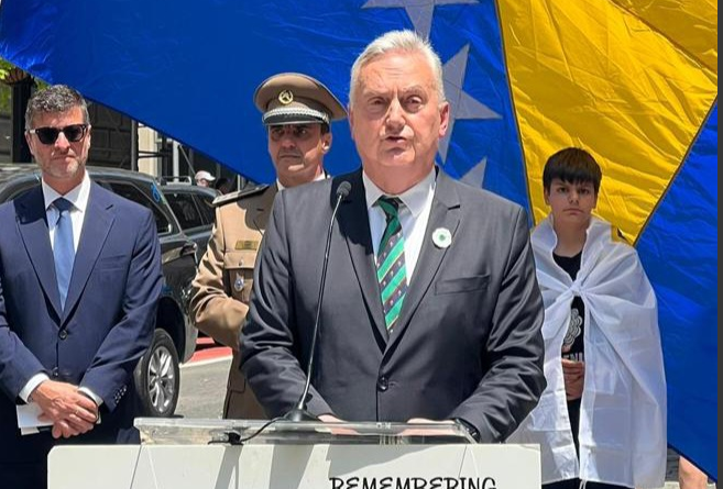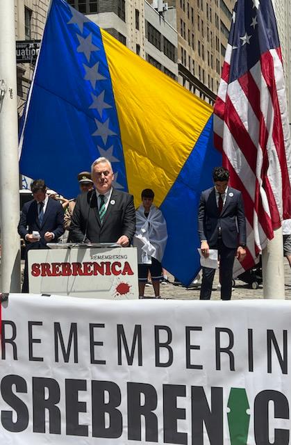 Stalni predstavnik Bosne i Hercegovine pri Ujedinjenim nacijama u New Yorku, ambasador dr. Zlatko Lagumdžija prisustvovao je obilježavanju 28. godišnjice genocida u Srebrenici i podizanju zastave Bosne i Hercegovine u Bowling Greens Parku, u organizaciji Američko-bosanske zajednica u New Yorku.