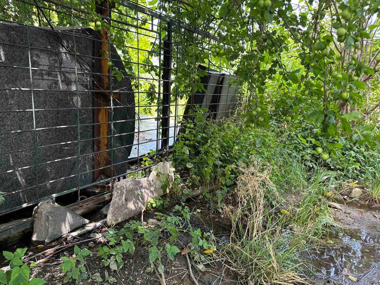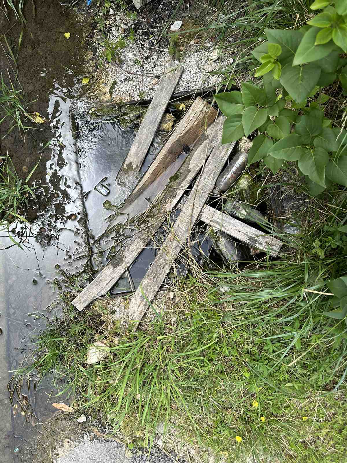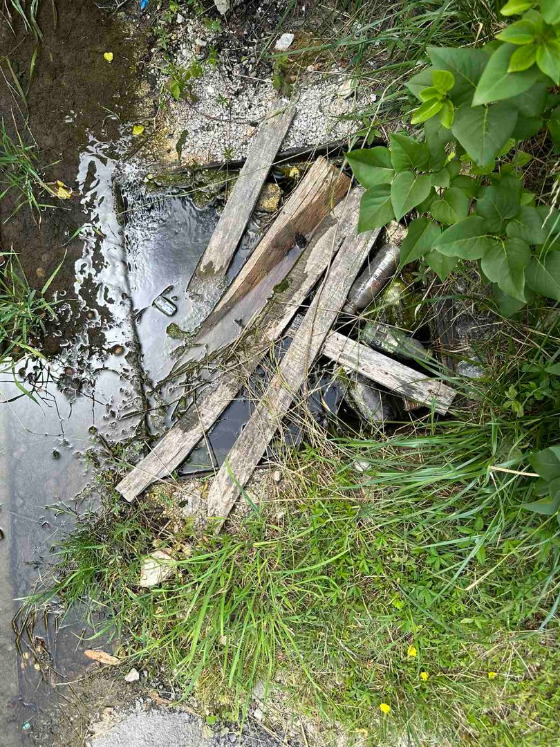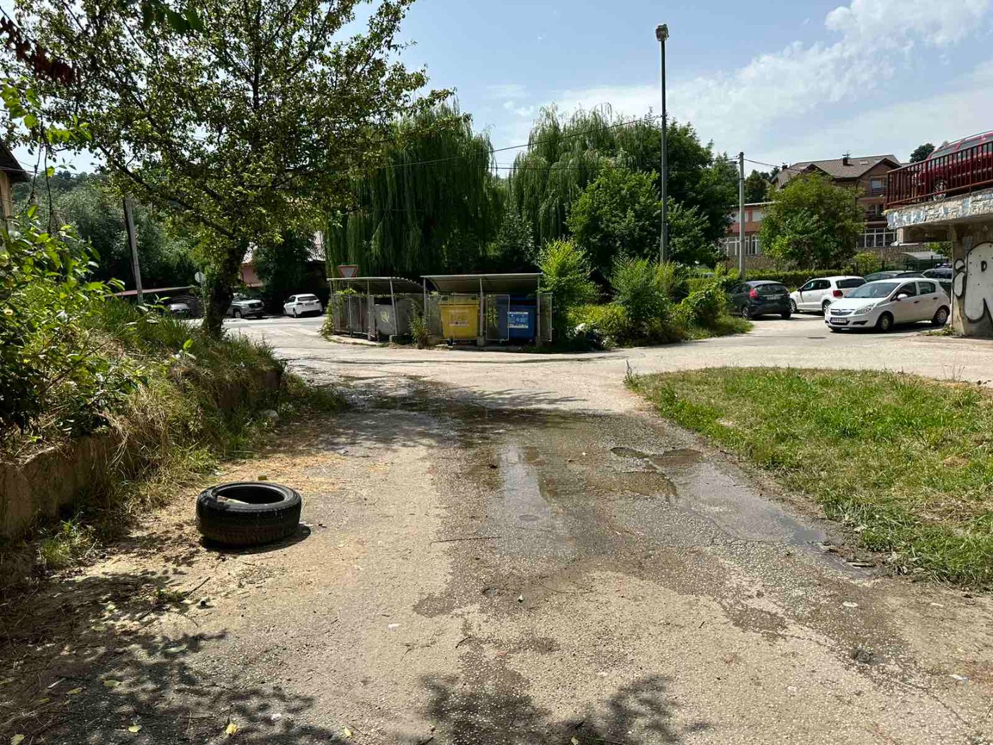 Slika ispod snimljena je prekoputa. Poplavljen šaht iz kojeg se voda izlijeva pred stambene objekte i proizvode prave probleme mještanima. Sve je zaraslo, zatrpano smećem i puno gmizavaca.