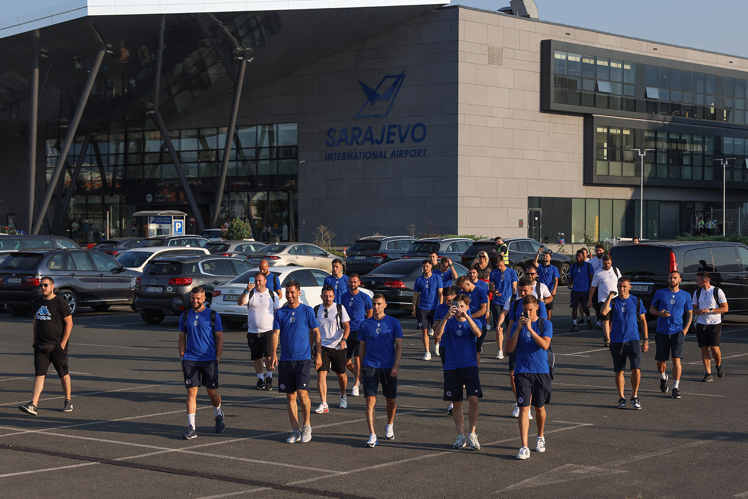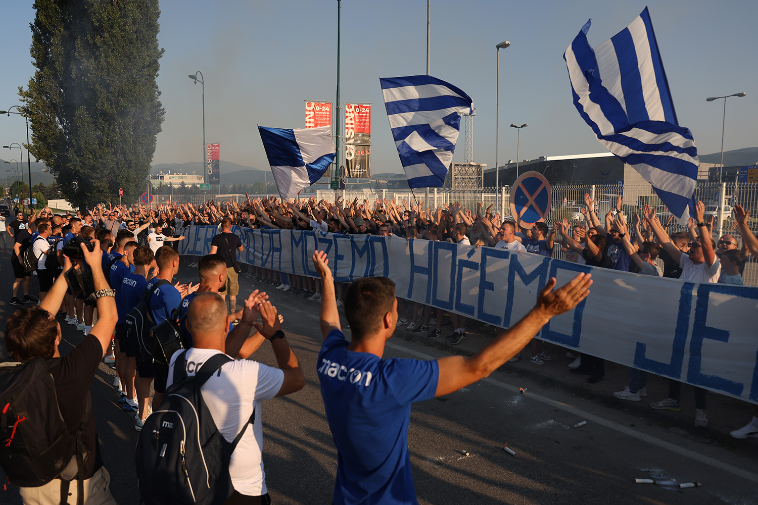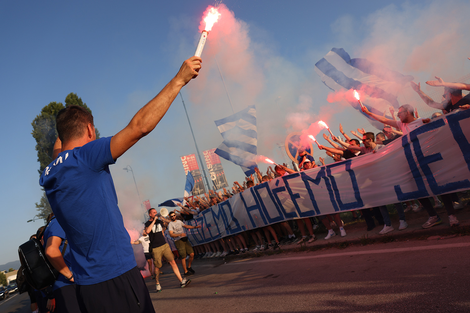 Uoči puta za Baku navijači Željezničara pripremili su im dostojan ispraćaj uz pjesmu, bakljadu i transparente.