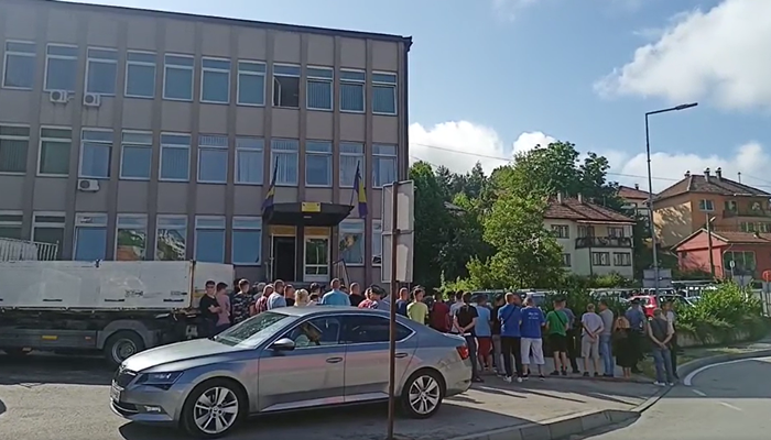 30-ak građana Kaknja okupilo se ispred Općinskog suda u Kaknju gdje pružaju podršku policijskim službenicima uhapšenim u akciji Meta 2.