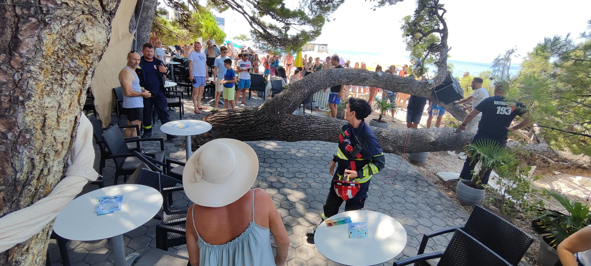 Na plažu punu kupača u Baškoj Vodi danas oko 12 sati srušilo se stablo.