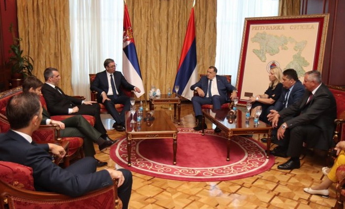 Nakon sastanka biće održana i konferencija za novinare predsjednika RS Milorada Dodika i predsjednika Srbije Aleksandra Vučića.
